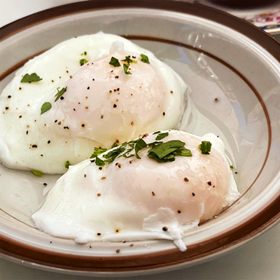 We have a special container that is designed for cooking poached eggs in the microwave and it is fantastic.