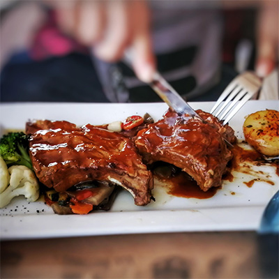 You will need some pork ribs Tomato Sauce (Ketchup) Vinegar (brown or white) Brown or Cane sugar...and some salt Black pepper or chilli optional... You honestly won't believe how good this one tastes...sooo easy! Chop the ribs up into portions....grease a baking tray Make up a mixture of 2/3 Ketchup and 1/3 vinegar Put the ribs in a bowl cover them with the sauce Mix it about...pour it all into the baking tray..any spare sauce on top and...