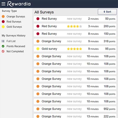 - Tool "Sort" were you can organize surveys by Type, Rank, Points and Time