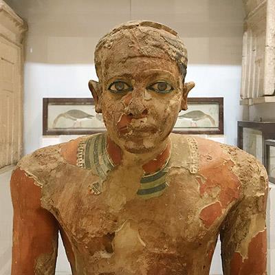 Which ancient Egyptian statue looks more complex?