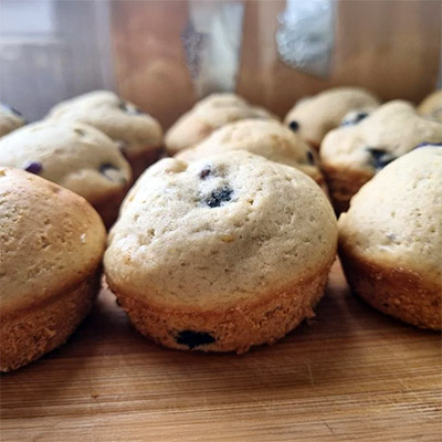 2 Cups Flour 1/3 Cup Brown Sugar 1/2 Cup white Sugar 2 teaspoon Baking Powder 1 teaspoon Cinnamon 1/2 teaspoon Salt 2 Large Eggs Lightly beaten 1/3Cup Milk 1/2 Cup Melted Butter 1 teaspoon Vanilla 1 Large Apple 1.5 Cup frozen Blueberries Preheat oven to 190°C. Line 12 muffin cups with cupcake liners, or spray with baking spray. In a large bowl, combine flour, sugars, baking powder, cinnamon, and salt. Make a well in center of flour mixture; set aside In another bowl, combine eggs, milk, melted butter, and vanilla, Peel and grate the apple; add grated apple to this wet mix. Add the wet ingredients mixture to the flour mixture, along with the blueberries. Give it a good stir. Divide into muffin cups and bake for 18-20 minutes | ||