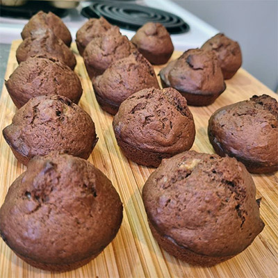 3 bananas 2 Eggs 1 tsp Baking soda 100 g Brown sugar 3 tbsp Cocoa powder 225 g Plain flour 125 Millilitres olive oil Preheat the oven to 200°C and grease a 12- hole muffin tin mash the bananas in a bowl using a fork. Add the oil, eggs, and sugar to the mashed bananas. Mix well until combined. Prepare dry ingredients: In another bowl, mix the flour, cocoa.powder, and baking soda. Add the dry ingredients to the banana mixture, stirring gently until just combined. Spoon the batter evenly into the muffin tray. Place in the oven and bake for 15 20 minutes. | ||
